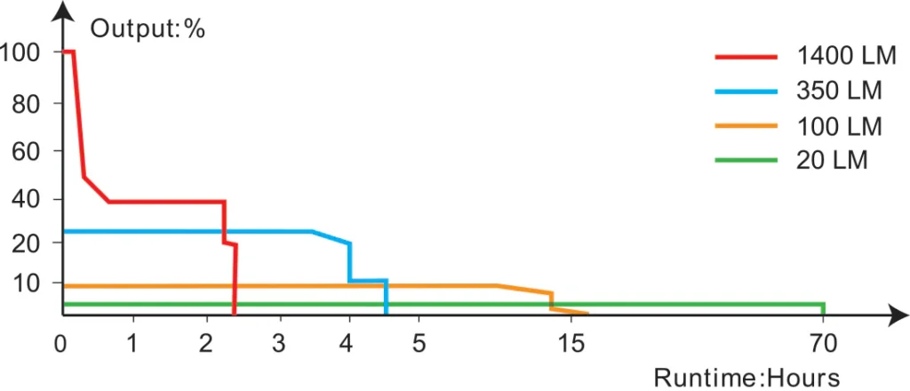 ממשק ההפעלה של הפנס אינטואיטיבי ופשוט לשימוש: כפתור הפעלה שמאפשר מעבר בין מצבי תאורה שונים – מעוצמת אור נמוכה לחיסכון בסוללה, דרך מצב בינוני לכל פעילות יומיומית, ועד למצב טורבו לעוצמה מקסימלית. בנוסף, קיימים מצבי הבהוב (Strobe) להתרעה או לעזרה במצבי חירום.